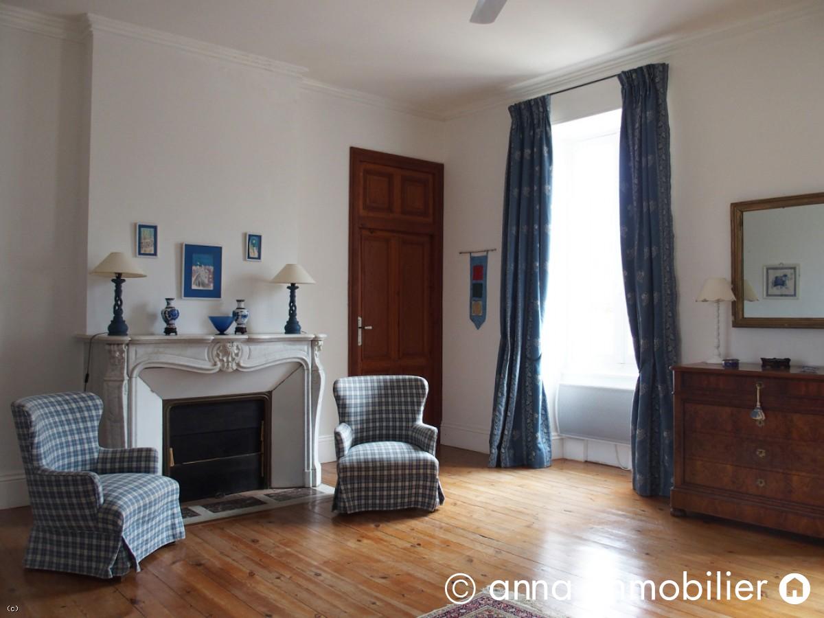La demeure principale de 1801 est élevée sur 2 niveaux. Dans toutes les pièces de matériaux nobles et d’origine ont été préservés, comme des sols en pierre, en terre cuite ou parquet en bois. Au rez de cour le hall d’entrée donne accès au grand escalier en pierre et la galerie qui dessert l’étage. A gauche de l’entrée, un petit salon avec plafond vouté et une cheminée en brique. Une chambre avec dressing et une salle de bain. Depuis le salon on accède à deux bureaux communicants. A droite de l’entrée, une grande salle à manger avec boiseries rénovées par un compagnon, plafond avec double croisée en ogive et belle cheminée en pierre Louis XVI. Ensuite une bibliothèque dans une grande salle voutée, et enfin une grande salle avec cheminée monumentale en pierre, belle charpente apparente cintrée dans l'esprit des charpenteries de marine, hauteur sous cintre 4m.